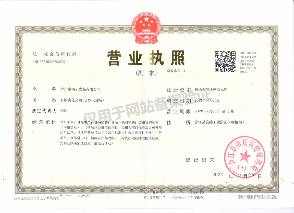 瀘州市鴻云食品有限公司成立于2003年,座落于四川省合江縣臨港工業(yè)園區(qū)(聯(lián)榕壩)。是利用農(nóng)產(chǎn)品為主要原料專(zhuān)業(yè)生產(chǎn)糖果的食品工業(yè)規(guī)模企業(yè)。 公司已獲得食品生產(chǎn)許可證,是瀘州市知名商標(biāo),通過(guò)HACCP體系認(rèn)證。2006年被四川省質(zhì)量技術(shù)監(jiān)督局評(píng)為“四川省民營(yíng)企業(yè)質(zhì)量先進(jìn)單位”, 曾先后被四川省質(zhì)量技術(shù)監(jiān)督局評(píng)為質(zhì)量信譽(yù)AA級(jí)企業(yè),公司產(chǎn)品榮獲四川名牌產(chǎn)品稱(chēng)號(hào)。2018年獲得了“四川扶貧”集體商標(biāo)授權(quán)證書(shū)。2020年鴻云核桃糕制作技藝被合江縣人民政府評(píng)為非物質(zhì)文化遺產(chǎn)項(xiàng)目,2021年鴻云酥糖制作技藝被合江縣人民政府評(píng)為非物質(zhì)文化遺產(chǎn)項(xiàng)目,2021年被合江縣稅務(wù)...